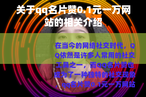 在当今的网络社交时代,QQ依然是许多人常用的社交工具之一,而QQ名片赞也成为了一种独特的社交现象,qq名片赞0.1元一万网站在网络上逐渐引起了人们的关注。