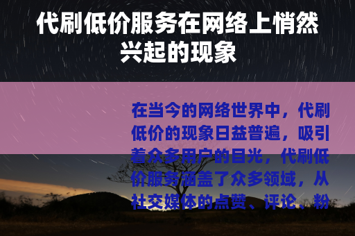 在当今的网络世界中,代刷低价的现象日益普遍,吸引着众多用户的目光,代刷低价服务涵盖了众多领域,从社交媒体的点赞、评论、粉丝数量,到各类平台的浏览量、下载量等等。