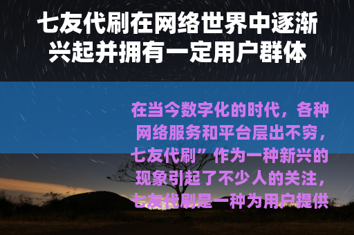 在当今数字化的时代,各种网络服务和平台层出不穷,七友代刷”作为一种新兴的现象引起了不少人的关注。