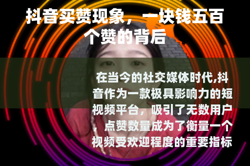 在当今的社交媒体时代,抖音作为一款极具影响力的短视频平台,吸引了无数用户,点赞数量成为了衡量一个视频受欢迎程度的重要指标之一,而在市场上,出现了一种现象,那就是号称一块钱能买到五百个赞。