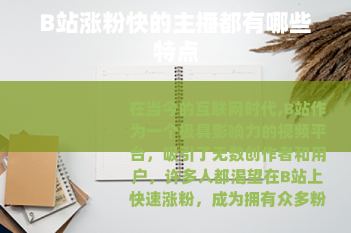 在当今的互联网时代,B站作为一个极具影响力的视频平台,吸引了无数创作者和用户,许多人都渴望在B站上快速涨粉,成为拥有众多粉丝的知名主播,B站涨粉快的主播究竟有哪些特点呢? 的独特性是关键,那些涨粉迅速的主播往往能够提供与众不同的视频内容,他们可能专注于某个特定的小众领域,如小众乐器演奏、古老手工艺传承等,满足了特定群体的兴趣需求,或者以独特的视角和创意来呈现常见的主题,让观众在众多类似的视频中眼前一亮,有的主播会将美食制作与搞笑剧情相结合,在教大家做菜的同时,又能带来欢乐的氛围,使观众在轻松愉快的状态下记住了主播和其内容。