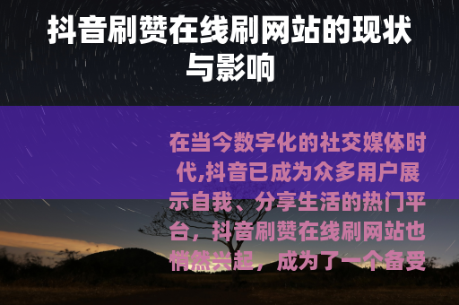 在当今数字化的社交媒体时代,抖音已成为众多用户展示自我、分享生活的热门平台,抖音刷赞在线刷网站也悄然兴起,成为了一个备受关注的现象。
