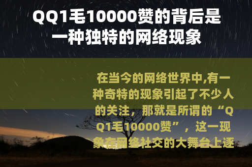 在当今的网络世界中,有一种奇特的现象引起了不少人的关注,那就是所谓的“QQ1毛10000赞”,这一现象在网络社交的大舞台上逐渐崭露头角,成为了许多人热议的话题。