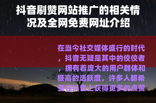 在当今社交媒体盛行的时代,抖音无疑是其中的佼佼者,拥有着庞大的用户群体和极高的活跃度,许多人都希望在抖音上获得更多的点赞,以此来提升自己作品的热度和影响力,抖音刷赞网站便应运而生,并且在网络上有不少关于其推广的信息,其中还涉及到一些全网免费网址。