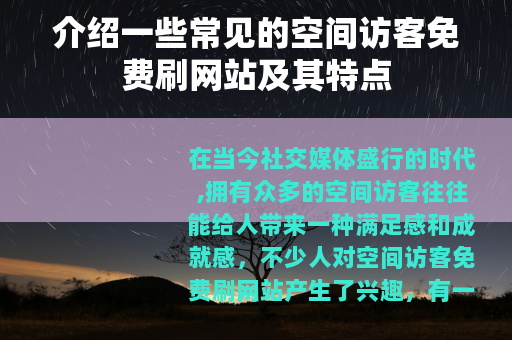 在当今社交媒体盛行的时代,拥有众多的空间访客往往能给人带来一种满足感和成就感,不少人对空间访客免费刷网站产生了兴趣。
