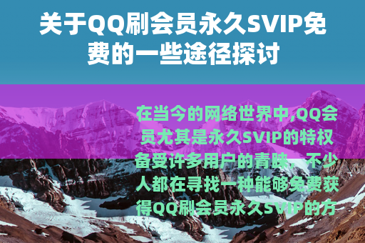 在当今的网络世界中,QQ会员尤其是永久SVIP的特权备受许多用户的青睐,不少人都在寻找一种能够免费获得QQ刷会员永久SVIP的方法。