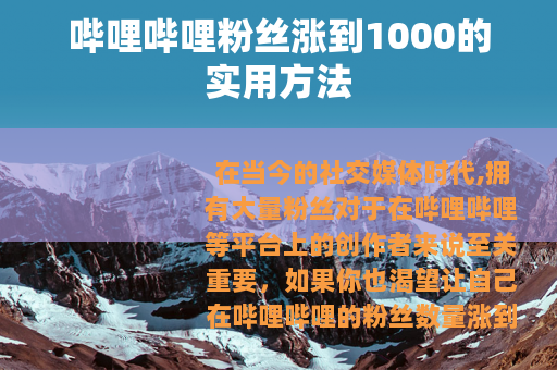 在当今的社交媒体时代,拥有大量粉丝对于在哔哩哔哩等平台上的创作者来说至关重要,如果你也渴望让自己在哔哩哔哩的粉丝数量涨到1000 ,以下是一些实用的方法可以帮助你实现这一目标。