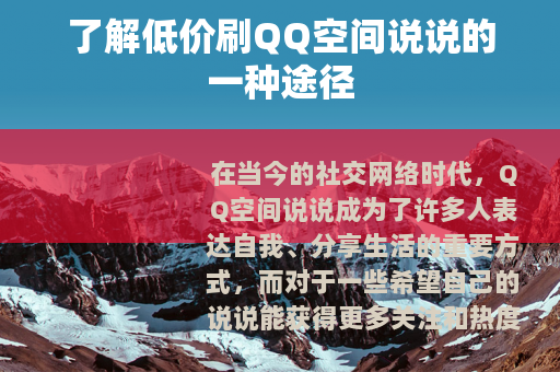 在当今的社交网络时代,QQ空间说说成为了许多人表达自我、分享生活的重要方式,而对于一些希望自己的说说能获得更多关注和热度的用户来说,可能会去寻找一些方法来提升说说的浏览量、点赞数和评论数等,低价刷QQ空间说说就是一种被部分人所知晓的途径。