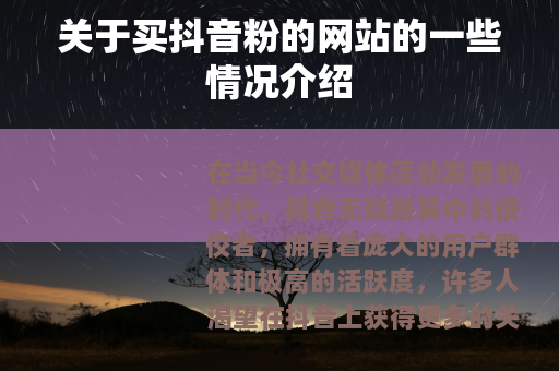 在当今社交媒体蓬勃发展的时代,抖音无疑是其中的佼佼者,拥有着庞大的用户群体和极高的活跃度,许多人渴望在抖音上获得更多的关注和粉丝,以提升自己的影响力和实现各种目标,在这样的背景下,买抖音粉的网站应运而生。