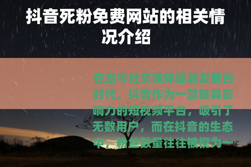 在当今社交媒体蓬勃发展的时代,抖音作为一款极具影响力的短视频平台,吸引了无数用户,而在抖音的生态中,粉丝数量往往被视为一个重要的指标,它在一定程度上反映了账号的受欢迎程度和影响力,抖音死粉免费网站便应运而生,成为了一些人关注的焦点。