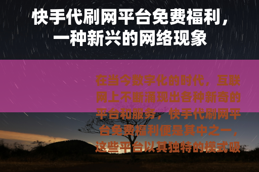 在当今数字化的时代,互联网上不断涌现出各种新奇的平台和服务,快手代刷网平台免费福利便是其中之一,这些平台以其独特的模式吸引了众多用户的关注,为快手用户提供了一种获取更多关注和流量的途径。