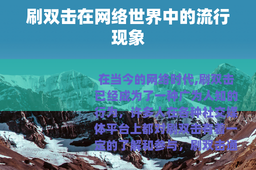 在当今的网络时代,刷双击已经成为了一种广为人知的行为,许多人在各种社交媒体平台上都对刷双击有着一定的了解和参与。