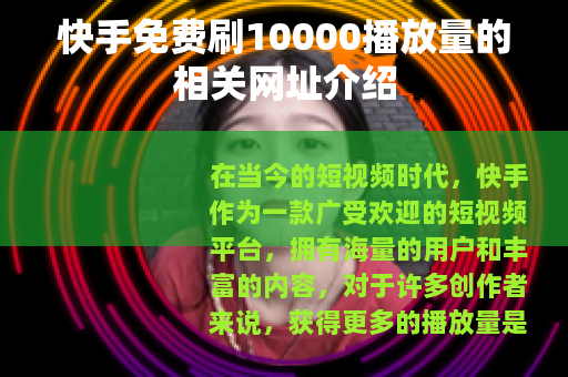 在当今的短视频时代,快手作为一款广受欢迎的短视频平台,拥有海量的用户和丰富的内容,对于许多创作者来说,获得更多的播放量是他们追求的目标之一,这不仅能带来更多的关注和粉丝,还可能为其带来一定的商业机会,一些人可能会寻找能够免费刷快手播放量的方法,其中就包括一些声称可以免费刷10000播放的网址。