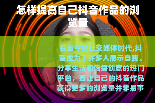 在当今的社交媒体时代,抖音成为了许多人展示自我、分享生活和传播创意的热门平台,要让自己的抖音作品获得更多的浏览量并非易事,需要掌握一些有效的方法和技巧。 的质量至关重要,一个吸引人的抖音作品需要有独特的创意和价值,无论是搞笑、美食、旅游还是知识分享等各种类型的视频,都要确保能在众多同类作品中脱颖而出,在拍摄美食视频时,可以尝试独特的拍摄角度,展示美食的制作过程和诱人的成品,同时搭配生动有趣的解说,让观众不仅能看到美食,还能感受到制作的乐趣和美食背后的文化。