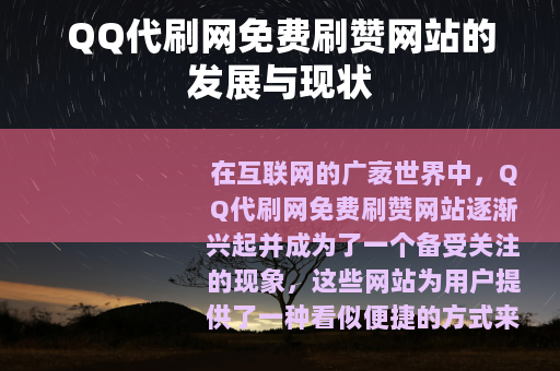在互联网的广袤世界中,QQ代刷网免费刷赞网站逐渐兴起并成为了一个备受关注的现象,这些网站为用户提供了一种看似便捷的方式来增加QQ空间的点赞数、评论数以及其他社交互动指标。
