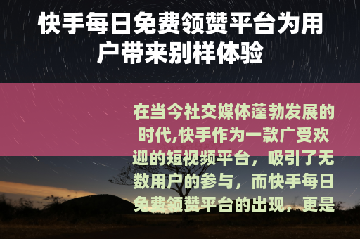 在当今社交媒体蓬勃发展的时代,快手作为一款广受欢迎的短视频平台,吸引了无数用户的参与,而快手每日免费领赞平台的出现,更是为快手用户增添了一份独特的乐趣与机遇。