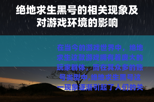 在当今的游戏世界中,绝地求生这款游戏拥有着庞大的玩家群体,而在其众多的账号类型中,绝地求生黑号这一现象逐渐引起了人们的关注。