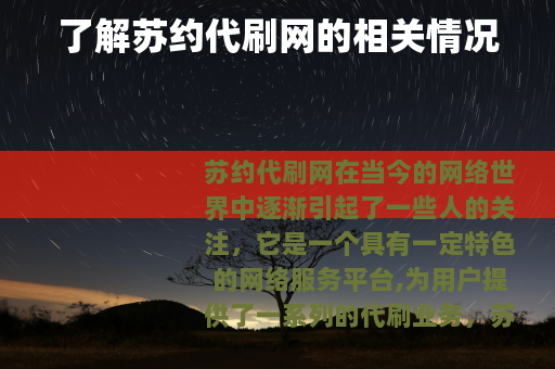苏约代刷网在当今的网络世界中逐渐引起了一些人的关注,它是一个具有一定特色的网络服务平台,为用户提供了一系列的代刷业务。