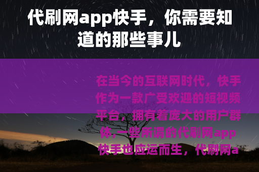 在当今的互联网时代,快手作为一款广受欢迎的短视频平台,拥有着庞大的用户群体,一些所谓的代刷网app快手也应运而生。