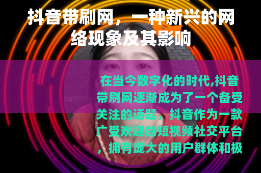 在当今数字化的时代,抖音带刷网逐渐成为了一个备受关注的话题,抖音作为一款广受欢迎的短视频社交平台,拥有庞大的用户群体和极高的活跃度,而抖音带刷网则是在其基础上应运而生的一种服务模式。