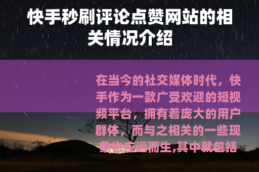 在当今的社交媒体时代,快手作为一款广受欢迎的短视频平台,拥有着庞大的用户群体,而与之相关的一些现象也应运而生,其中就包括快手秒刷评论点赞网站。