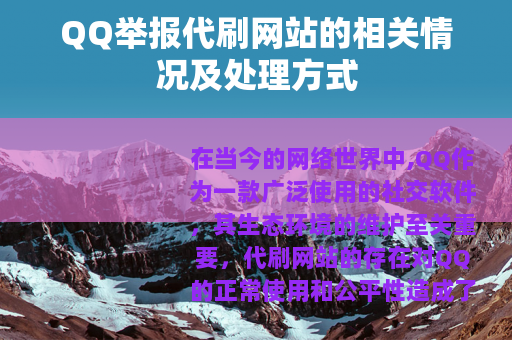 在当今的网络世界中,QQ作为一款广泛使用的社交软件,其生态环境的维护至关重要,代刷网站的存在对QQ的正常使用和公平性造成了一定的影响,因此QQ举报代刷网站成为了一个值得关注的话题。