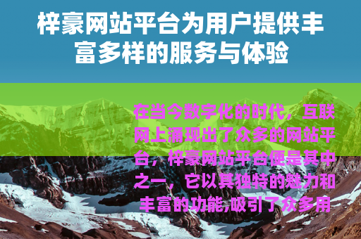在当今数字化的时代,互联网上涌现出了众多的网站平台,梓豪网站平台便是其中之一,它以其独特的魅力和丰富的功能,吸引了众多用户的关注和参与。