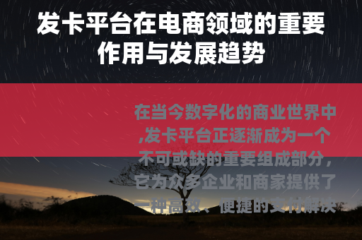 在当今数字化的商业世界中,发卡平台正逐渐成为一个不可或缺的重要组成部分,它为众多企业和商家提供了一种高效、便捷的支付解决方案,在促进交易、提升用户体验等方面发挥着积极的作用。