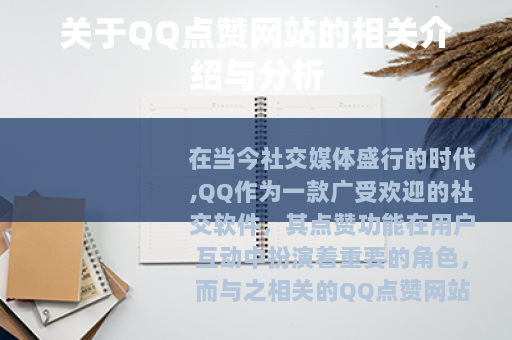 在当今社交媒体盛行的时代,QQ作为一款广受欢迎的社交软件,其点赞功能在用户互动中扮演着重要的角色,而与之相关的QQ点赞网站也应运而生,为用户提供了一种别样的社交体验。