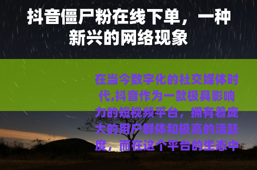 在当今数字化的社交媒体时代,抖音作为一款极具影响力的短视频平台,拥有着庞大的用户群体和极高的活跃度,而在这个平台的生态中,出现了一种引人注目的现象——抖音僵尸粉在线下单。