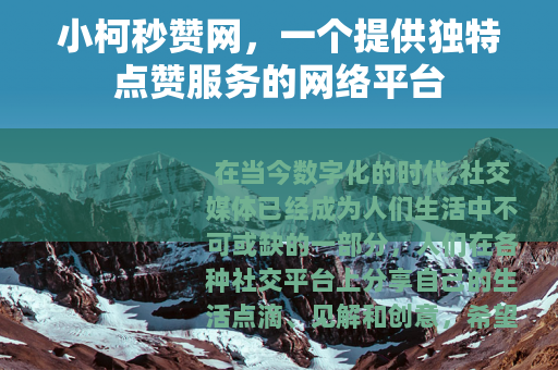 在当今数字化的时代,社交媒体已经成为人们生活中不可或缺的一部分,人们在各种社交平台上分享自己的生活点滴、见解和创意,希望能够得到更多人的关注和认可,而点赞作为一种简单而直接的互动方式,成为了衡量内容受欢迎程度的重要指标之一,在众多与点赞相关的服务中,小柯秒赞网逐渐崭露头角。