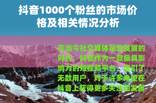 在当今社交媒体蓬勃发展的时代,抖音作为一款极具影响力的短视频平台,吸引了无数用户,对于许多希望在抖音上获得更多关注和发展机会的人来说,粉丝数量是一个重要的指标,关于抖音1000个粉丝多少钱这个问题,也引发了不少人的关注和讨论。