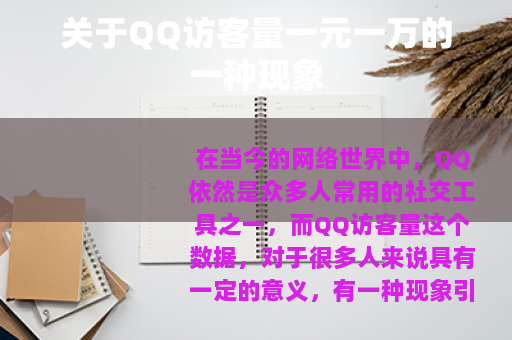 在当今的网络世界中,QQ依然是众多人常用的社交工具之一,而QQ访客量这个数据,对于很多人来说具有一定的意义,有一种现象引起了不少人的关注,那就是所谓的QQ访客量一元一万的情况。