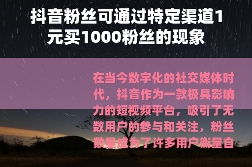 抖音粉丝可通过特定渠道1元买1000粉丝的现象