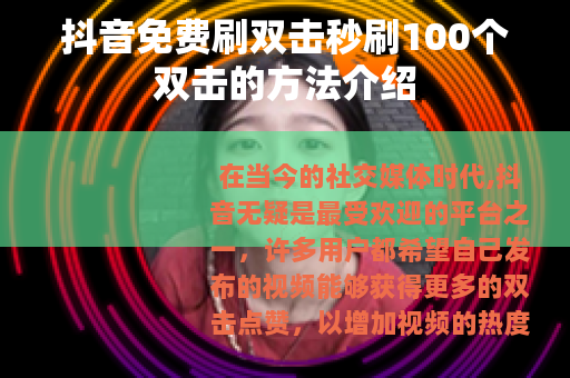 在当今的社交媒体时代,抖音无疑是最受欢迎的平台之一,许多用户都希望自己发布的视频能够获得更多的双击点赞,以增加视频的热度和曝光度,而关于抖音免费刷双击秒刷100个双击的话题也备受关注。