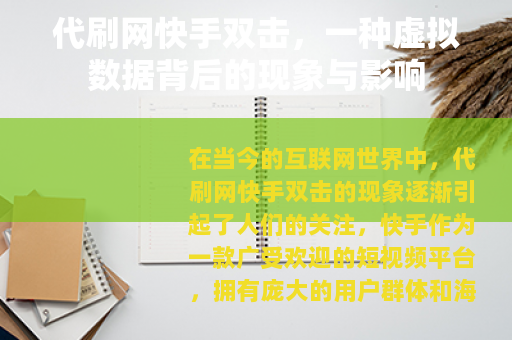 在当今的互联网世界中,代刷网快手双击的现象逐渐引起了人们的关注,快手作为一款广受欢迎的短视频平台,拥有庞大的用户群体和海量的视频内容,而代刷网快手双击则是在这个生态中衍生出的一种特殊服务。