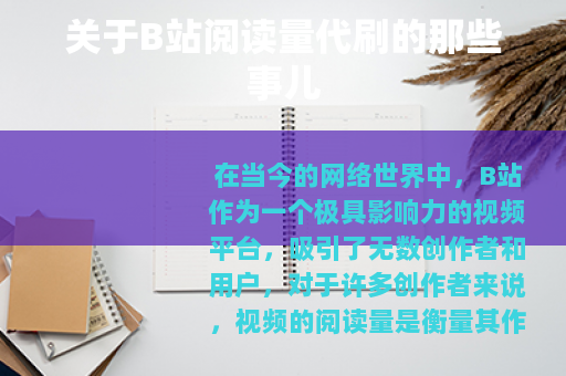 在当今的网络世界中,B站作为一个极具影响力的视频平台,吸引了无数创作者和用户,对于许多创作者来说,视频的阅读量是衡量其作品受欢迎程度的一个重要指标,在追求高阅读量的过程中,出现了一种现象——B站阅读量代刷。