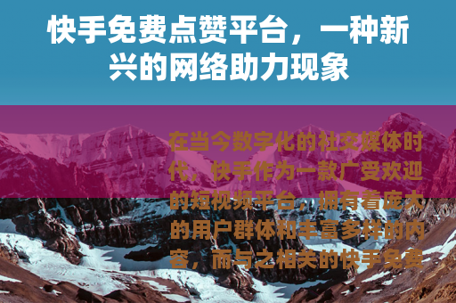 快手免费点赞平台作为一种新兴的网络助力现象,在快手的生态系统中扮演着重要的角色,它既为创作者提供了提升作品热度的机会,也为快手平台的发展带来了新的机遇和挑战,我们需要以客观、理性的态度来看待它,充分发挥其优势,同时积极应对其可能带来的问题,让其在健康、有序的轨道上发展,为我们的网络生活带来更多的便利和乐趣。
