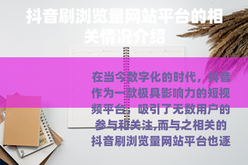 在当今数字化的时代,抖音作为一款极具影响力的短视频平台,吸引了无数用户的参与和关注,而与之相关的抖音刷浏览量网站平台也逐渐进入了人们的视野。