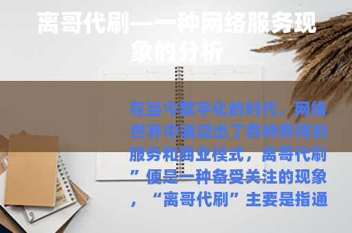 在未来,随着技术的不断进步和网络环境的日益规范,“离哥代刷”这种现象可能会逐渐受到更严格的监管和限制,但与此同时,也需要我们共同努力,探索出更加合理、有效的网络营销和推广方式,让网络世界能够真正成为一个公平、健康、充满活力的交流和发展平台,让每一个用户都能够通过真实的努力和才华在其中实现自己的价值和梦想,我们才能在享受网络带来的便利和机遇的同时,避免陷入虚假数据和不正当竞争的怪圈,共同营造一个积极向上的网络社会。