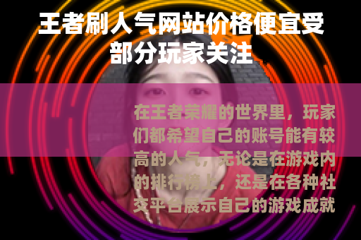 在王者荣耀的世界里,玩家们都希望自己的账号能有较高的人气,无论是在游戏内的排行榜上,还是在各种社交平台展示自己的游戏成就时,高人气都能带来一种满足感和成就感,而如今,网络上出现了不少声称可以提供王者刷人气服务且价格便宜的网站,这引起了众多玩家的注意。