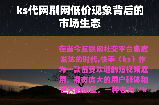在当今互联网社交平台高度发达的时代,快手(ks)作为一款备受欢迎的短视频应用,拥有庞大的用户群体和巨大的流量,一种名为“ks代网刷网低价”的现象也悄然兴起,在网络的某些角落形成了一个独特的市场生态。