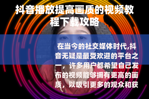 在当今的社交媒体时代,抖音无疑是最受欢迎的平台之一,许多用户都希望自己发布的视频能够拥有更高的画质,以吸引更多的观众和获得更高的播放量,我们就来为大家分享一些关于抖音播放怎么提高画质的实用方法,并且还会告诉大家在哪里可以下载相关的视频教程,帮助你轻松掌握这些技巧。
