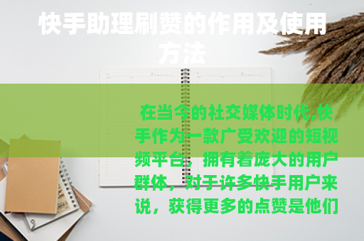 在当今的社交媒体时代,快手作为一款广受欢迎的短视频平台,拥有着庞大的用户群体,对于许多快手用户来说,获得更多的点赞是他们追求的目标之一,而快手助理刷赞便应运而生。