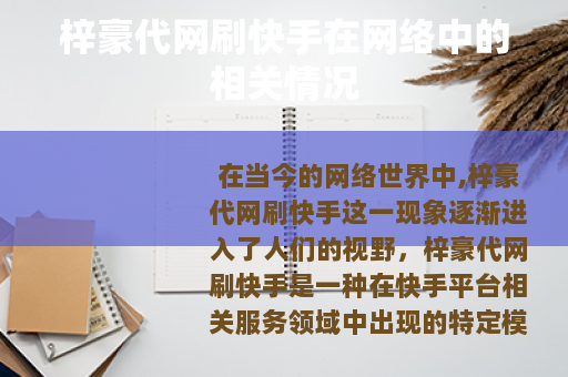 在当今的网络世界中,梓豪代网刷快手这一现象逐渐进入了人们的视野,梓豪代网刷快手是一种在快手平台相关服务领域中出现的特定模式。