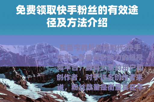 在当今的短视频时代,快手作为一款极具影响力的短视频平台,拥有大量的用户和创作者,对于许多创作者来说,粉丝数量是衡量其在平台上影响力和成功与否的重要指标之一,很多人都在寻找能够免费领取快手粉丝的方法,以下就为大家介绍一些可行的途径和策略。