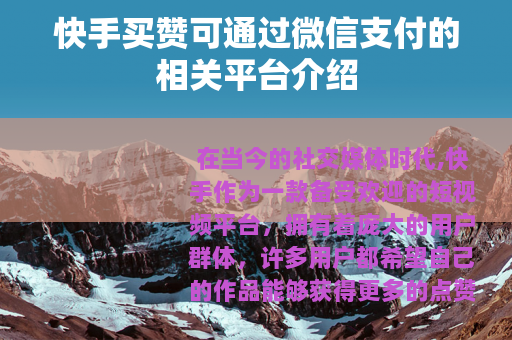 在当今的社交媒体时代,快手作为一款备受欢迎的短视频平台,拥有着庞大的用户群体,许多用户都希望自己的作品能够获得更多的点赞,从而提高曝光度和影响力,而在这个需求的推动下,出现了一些提供快手买赞服务的平台,其中一些平台支持微信支付,为用户提供了一种便捷的方式来增加自己作品的点赞量。