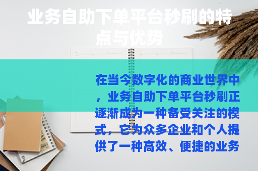 在当今数字化的商业世界中,业务自助下单平台秒刷正逐渐成为一种备受关注的模式,它为众多企业和个人提供了一种高效、便捷的业务处理方式。