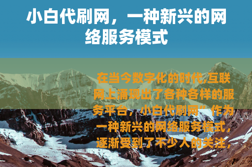 在当今数字化的时代,互联网上涌现出了各种各样的服务平台,小白代刷网”作为一种新兴的网络服务模式,逐渐受到了不少人的关注。