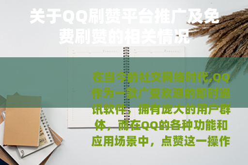 对于QQ刷赞平台推广QQ免费刷赞这种现象,我们应该以理性和客观的态度来看待,我们要理解用户对于社交认可和关注的需求,以及他们希望通过一些方式来提升自己在QQ社交中的存在感的心理,但另一方面,我们也要认识到刷赞行为可能带来的种种问题,并且要引导用户树立正确的社交观念,注重真实的社交互动和内容创作,QQ平台方也应该加强对刷赞等违规行为的监管和打击力度,维护QQ社交生态的健康和公平,让用户能够在一个真实、公正、有活力的社交环境中进行交流和互动,我们才能让QQ社交真正发挥其应有的价值,成为人们沟通交流、分享生活、增进感情的良好平台。